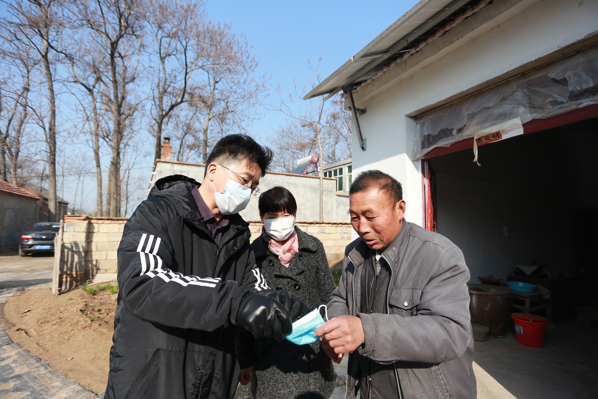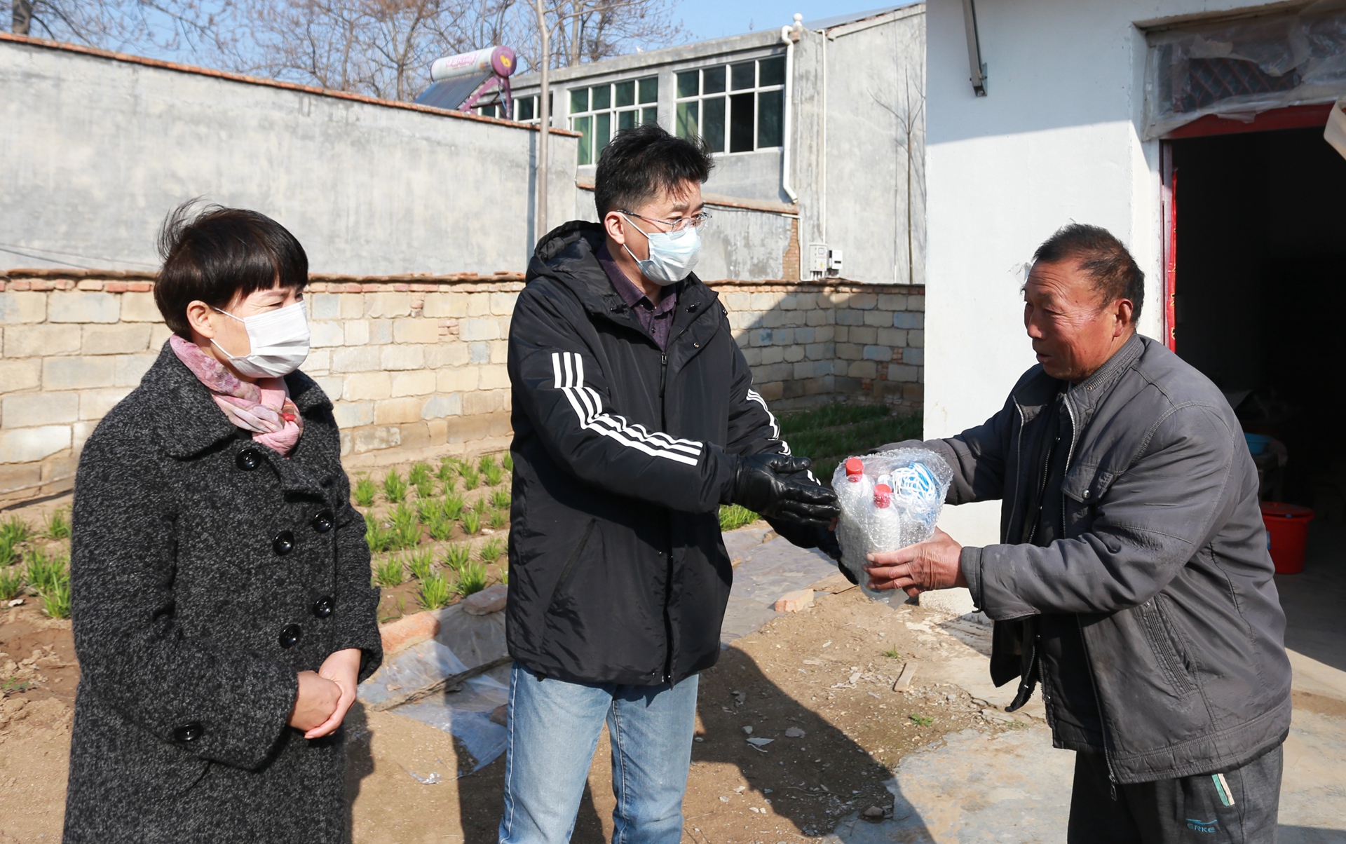 3月5日上午,市建投集團黨委委員、紀委書記王獻忠、紀檢監(jiān)察審計部部長趙明靈一行來到火神廟村,為幫扶對象黃傳平、丁配久家送來口罩、酒精和消毒液等抗疫防護物資。
