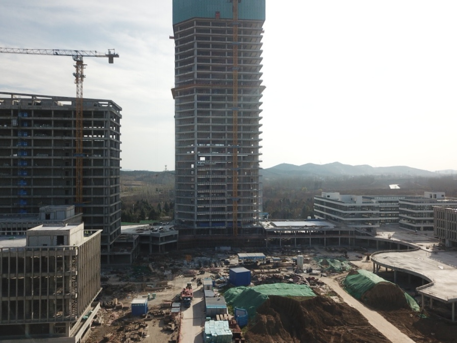 淮北第一高樓——商務(wù)政務(wù)中心采用框架核心筒結(jié)構(gòu),建筑面積超7萬(wàn)平方米,設(shè)計(jì)復(fù)雜、施工難度大,地下室出正負(fù)零后以平均7天一層的速度向上生長(zhǎng),工程部副部長(zhǎng)張玉坤駐點(diǎn)管理,項(xiàng)目在做到質(zhì)量、安全雙優(yōu)的同時(shí),以不到一年的時(shí)間實(shí)現(xiàn)封頂,刷新淮北速度。項(xiàng)目不僅提前完成了年度節(jié)點(diǎn)目標(biāo),而且先后獲得2020年“安徽省建筑安全生產(chǎn)標(biāo)準(zhǔn)化工地”、“全國(guó)AAA安全文明標(biāo)準(zhǔn)化工地項(xiàng)目”的省級(jí)、國(guó)家級(jí)榮譽(yù),在全市范圍內(nèi)先后召開(kāi)了兩次市住建局主辦的建筑質(zhì)量安全現(xiàn)場(chǎng)觀摩會(huì),下一步將爭(zhēng)創(chuàng)“黃山杯”及“國(guó)優(yōu)”工程,做到進(jìn)度、質(zhì)量?jī)刹徽`。目前南區(qū)各主樓結(jié)構(gòu)已全部封頂,二次結(jié)構(gòu)、安裝工程完成70%,即將進(jìn)入幕墻和裝飾裝修穿插施工階段。