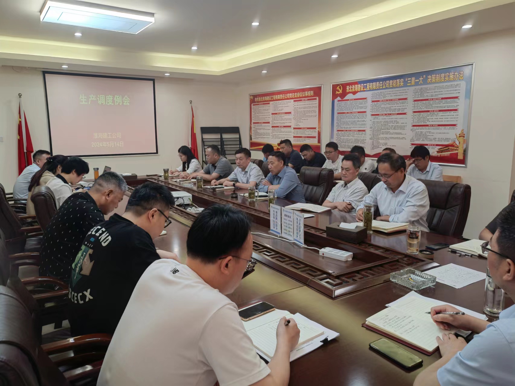 5月14日上午,淮海建工公司召開生產(chǎn)調(diào)度例會,重在總結(jié)近期各項目生產(chǎn)經(jīng)營情況,分析存在的問題,商討解決方案,確保公司各項工作穩(wěn)步推進。