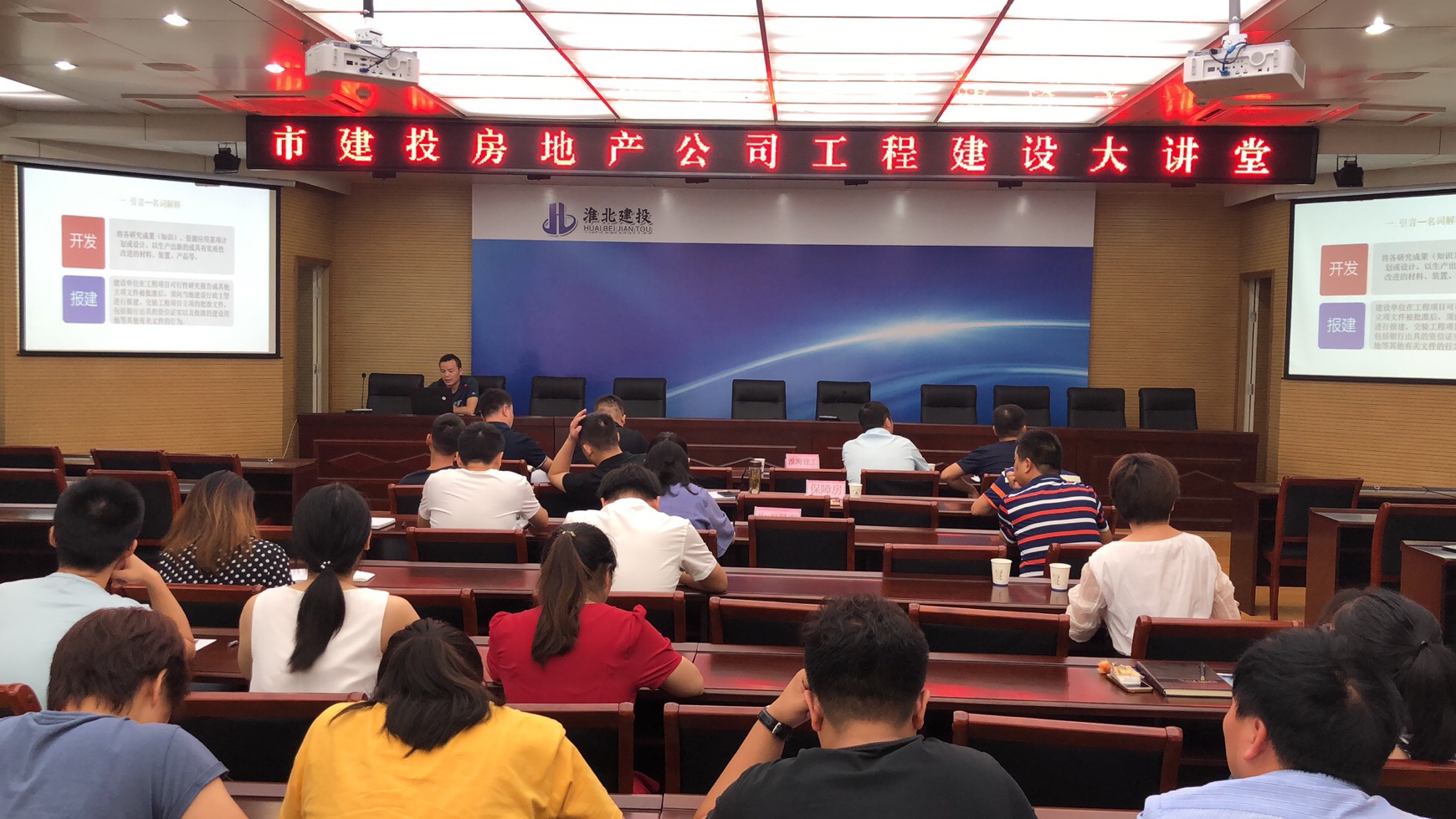 房地產(chǎn)黨支部堅持黨管人才原則,持續(xù)加強員工項目管理水平、開發(fā)能力等方面培訓(xùn)。8月14日在集團(tuán)公司二樓會議室房地產(chǎn)黨支部組織“工程大講堂”,來自小建投的40余名員工參加學(xué)習(xí)。