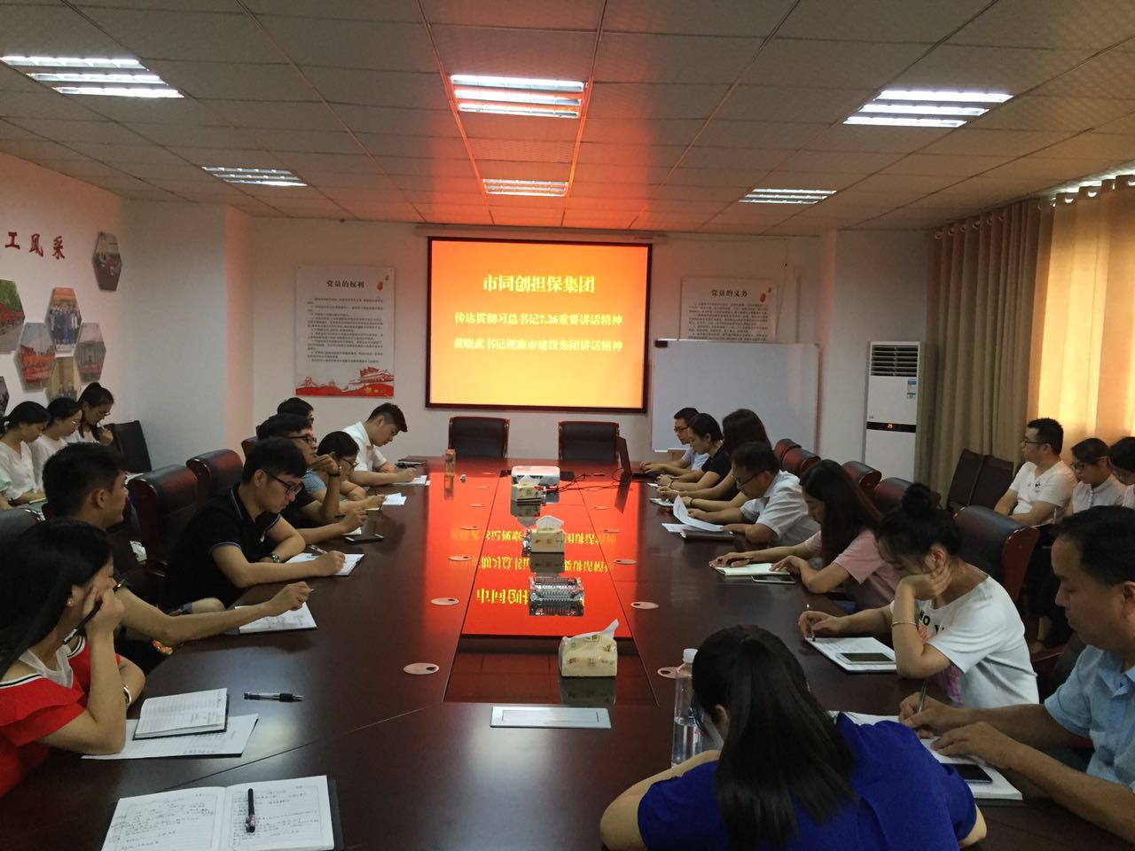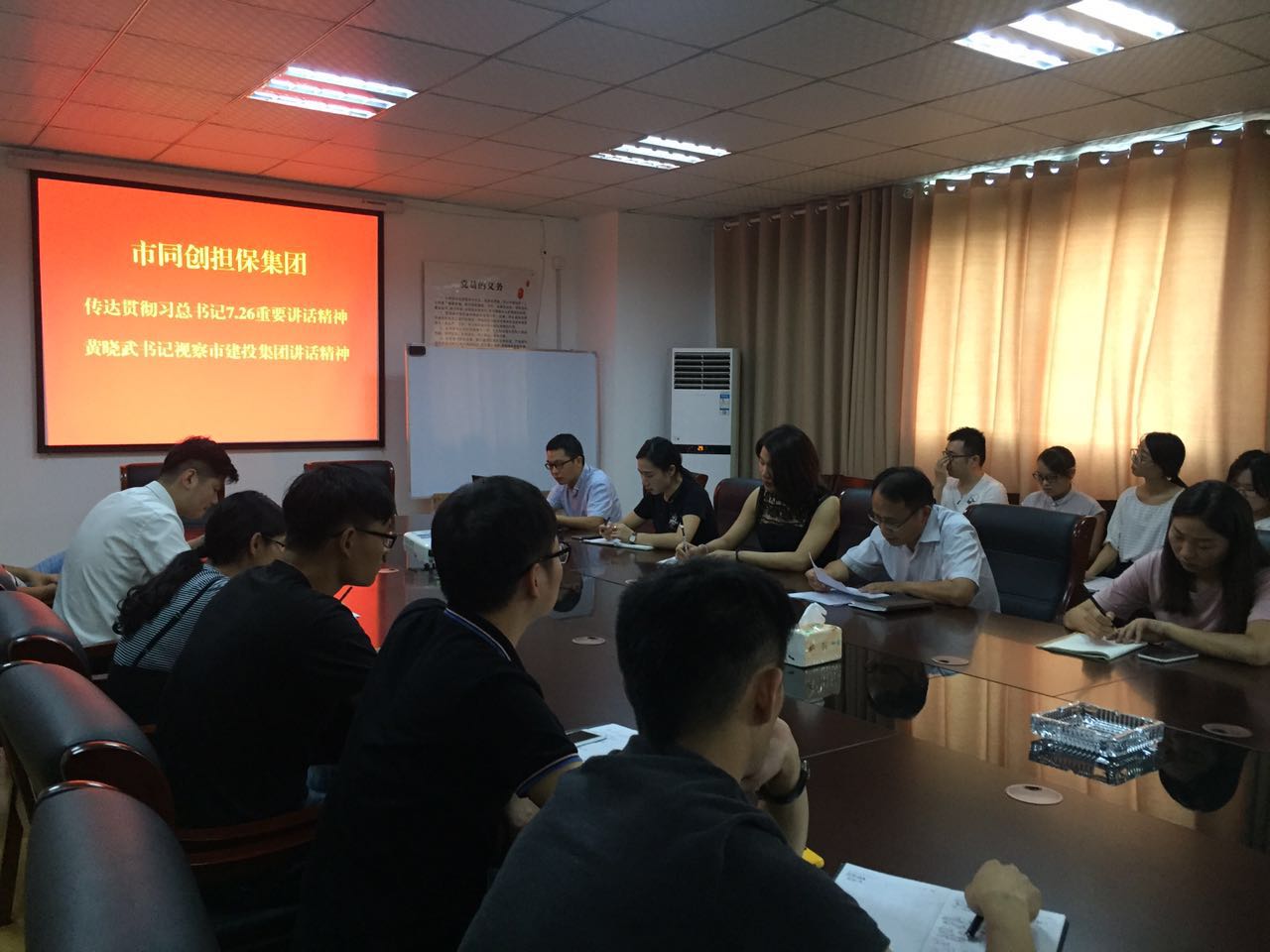 8月22日,市同創(chuàng)融資擔(dān)保集團組織全體員工學(xué)習(xí)貫徹習(xí)總書記7.26重要講話精神與市委書記黃曉武同志調(diào)研市建投集團講話精神。