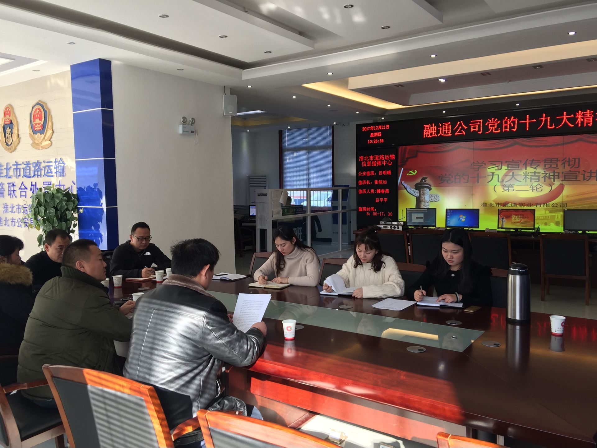 按照集團統(tǒng)一部署要求,12月21日融通公司全體員工在市道路運輸信息指揮中心一樓大廳進行第二輪學習傳達黨的十九大精神。