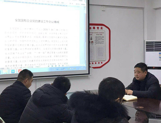 2018年12月29日下午,房地產(chǎn)公司召開支部學習會,學習傳達全國全省國有企業(yè)黨的建設工作會議精神。